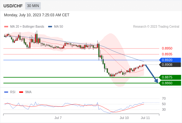 在 0.8920 之下,看跌,目标价位为 0.8875 ,然后为 0.8860 。