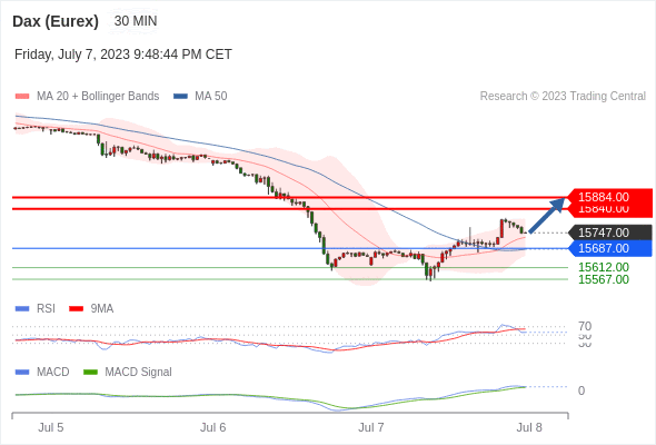 德国DAX指数期货 (Eurex)? 当日内: 看涨,当 15687.00 为支撑位。