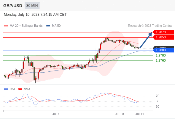 在 1.2800 之上,看涨,目标价位为 1.2850 ,然后为 1.2870 。