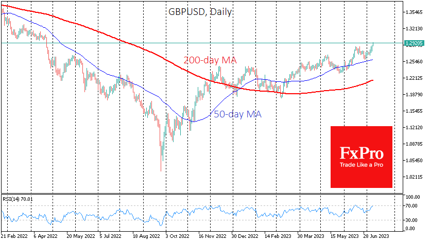 有趣的是,英镑兑美元汇率并没有对通胀加速做出显著贡献,仍然接近一年前的水平。然而,由于人们猜测英国央行不仅会继续加息,而且会在8月初的下一次会议上采取更激进的行动,英镑现在正在反弹。