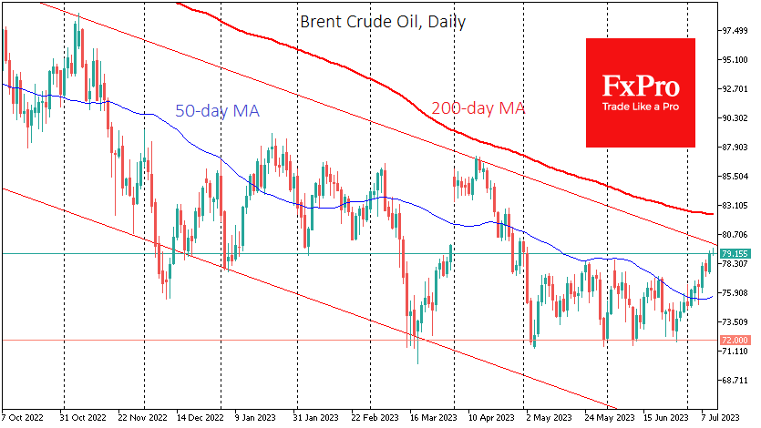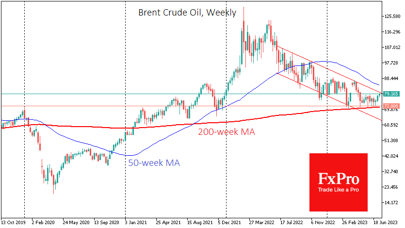 FxPro高级分析师Alex Kuptsikevich指出:自3月份以来,欧佩克+成员国的行动为油价绘制了一条清晰的水平线,因为减产干预措施几乎总是在油价接近72美元时出现。