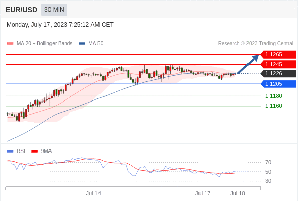 在 1.1205 之上,看涨,目标价位为 1.1245 ,然后为 1.1265 。