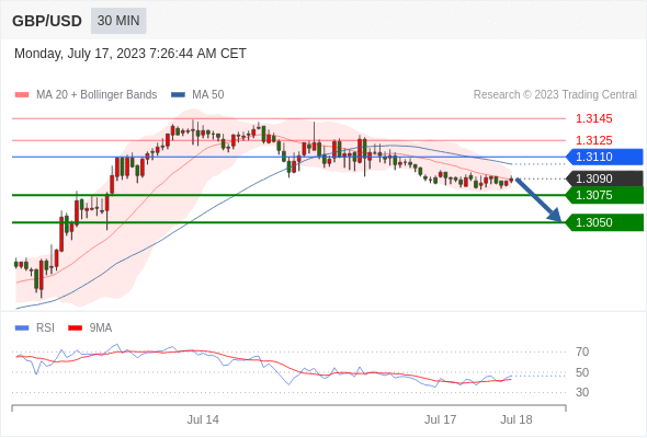在 1.3110 之下,看跌,目标价位为 1.3075 ,然后为 1.3050 。