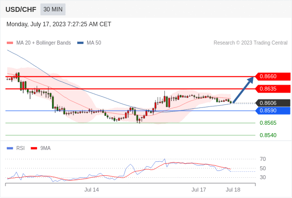 在 0.8590 之上,看涨,目标价位为 0.8635 ,然后为 0.8660 。