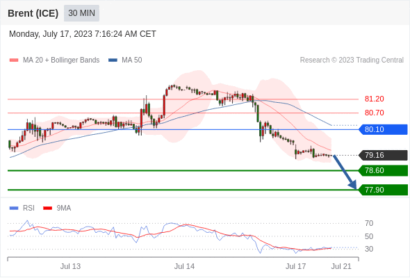 在 80.10 之下,看跌,目标价位为 78.60 ,然后为 77.90 。