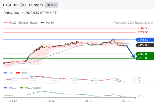 英国富时100指数期货 当日内: 看跌,在 7468.50 之下。