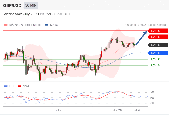 在 1.2865 之上,看涨,目标价位为 1.2905 ,然后为 1.2920 。