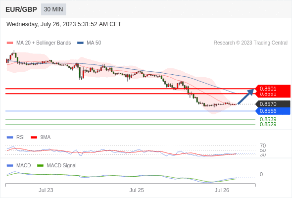 欧元/英镑 当日内: 有上涨的可能,目标价位定在 0.8601 。