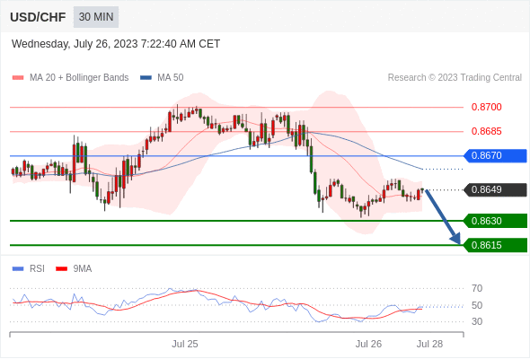 在 0.8670 之下,看跌,目标价位为 0.8630 ,然后为 0.8615 。