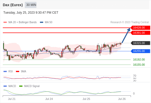 如跌破 16255 ,德国DAX指数期货 (Eurex) 目标方向定在 16192 和 16155 。