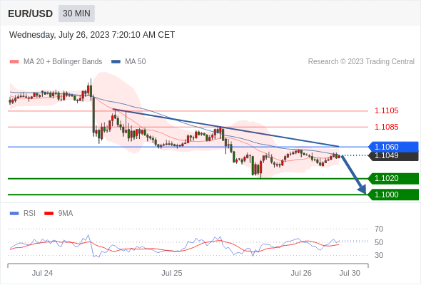 在 1.1060 之下,看跌,目标价位为 1.1020 ,然后为 1.1000 。