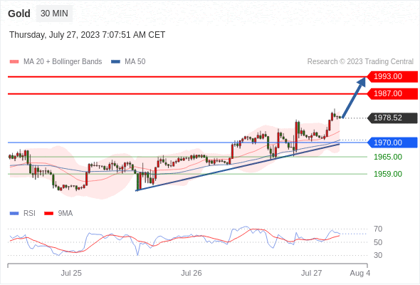 在 1970.00 之上,看涨,目标价位为 1987.00 ,然后为 1993.00 。