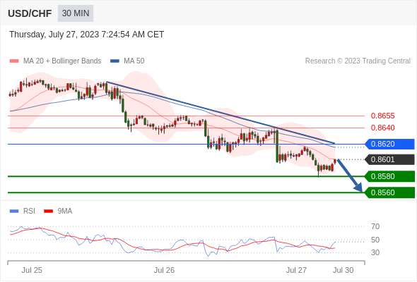 在 0.8620 之下,看跌,目标价位为 0.8580 ,然后为 0.8560 。