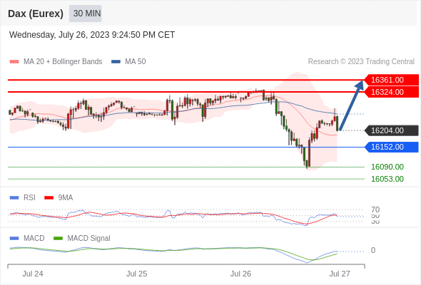 如跌破 16152 ,德国DAX指数期货 (Eurex) 目标方向定在 16090 和 16053 。