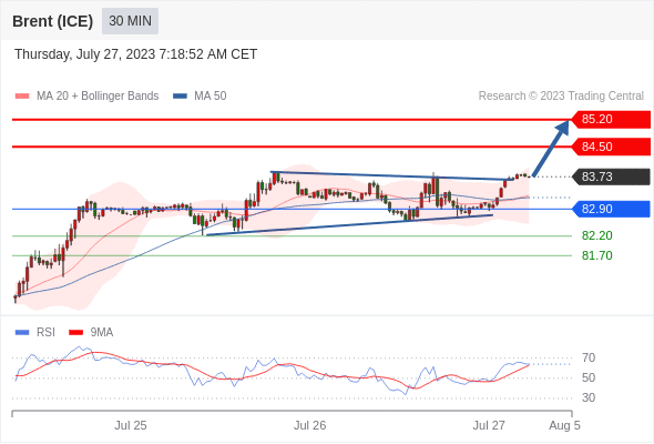 在 82.90 之上,看涨,目标价位为 84.50 ,然后为 85.20 。