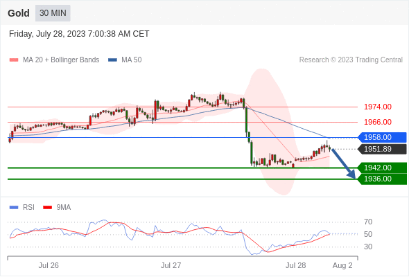 在 1958.00 之下,看跌,目标价位为 1942.00 ,然后为 1936.00 。