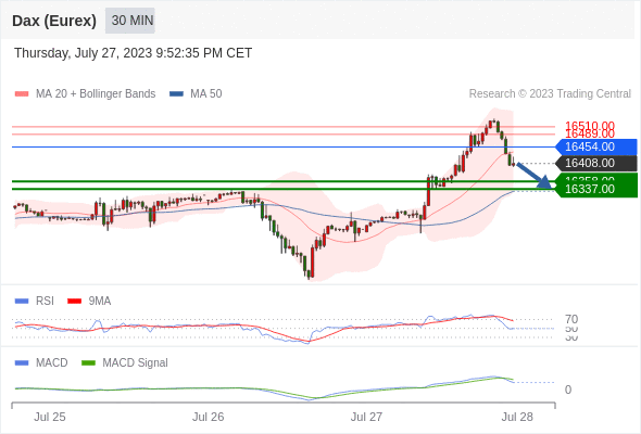 德国DAX指数期货 (Eurex)? 当日内: 逐渐下跌,当 16454.00 阻碍上行,则 16337.00 为目标位。