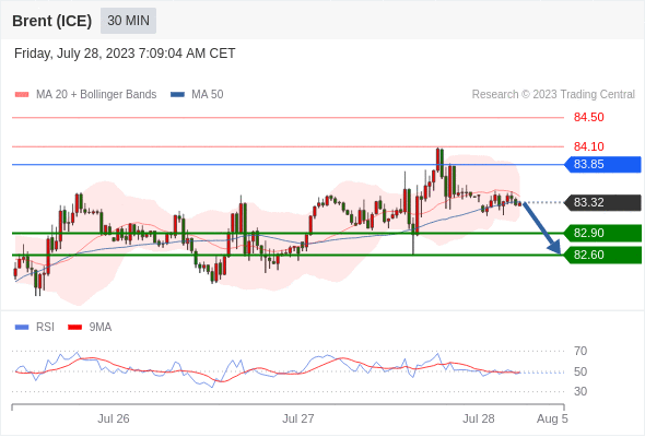 在 83.85 之下,看跌,目标价位为 82.90 ,然后为 82.60 。