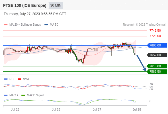 英国富时100指数期货 当日内: 看跌,在 7688.00 之下。