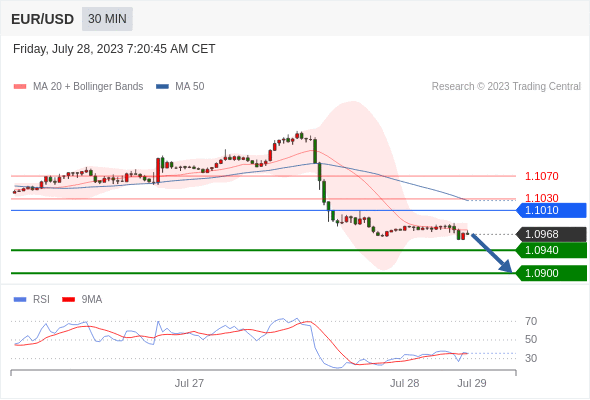 在 1.1010 之下,看跌,目标价位为 1.0940 ,然后为 1.0900 。