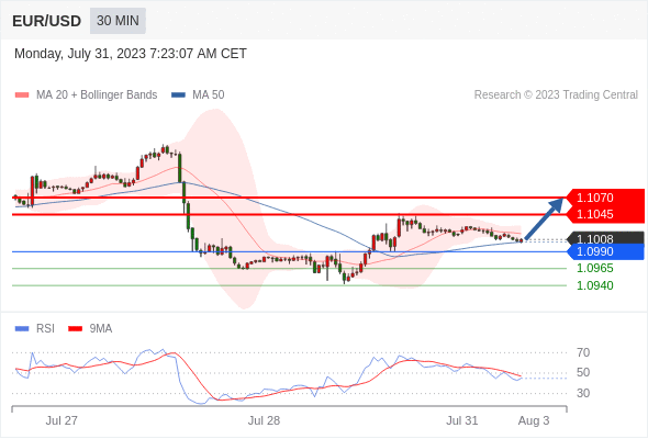 在 1.0990 之上,看涨,目标价位为 1.1045 ,然后为 1.1070 。