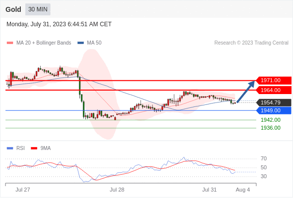 在 1949.00 之上,看涨,目标价位为 1964.00 ,然后为 1971.00 。