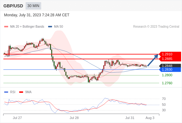 在 1.2830 之上,看涨,目标价位为 1.2885 ,然后为 1.2910 。