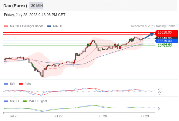 德国DAX指数期货 (Eurex)? 当日内: 看涨,当 16519.00 为支撑位,目标定在16618.00。