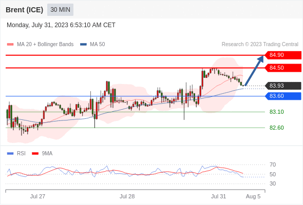 在 83.60 之上,看涨,目标价位为 84.50 ,然后为 84.90 。