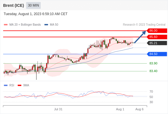 在 84.50 之上,看涨,目标价位为 85.60 ,然后为 86.00 。