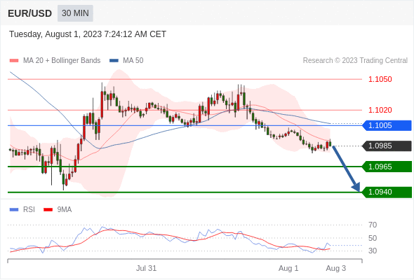 在 1.1005 之下,看跌,目标价位为 1.0965 ,然后为 1.0940 。