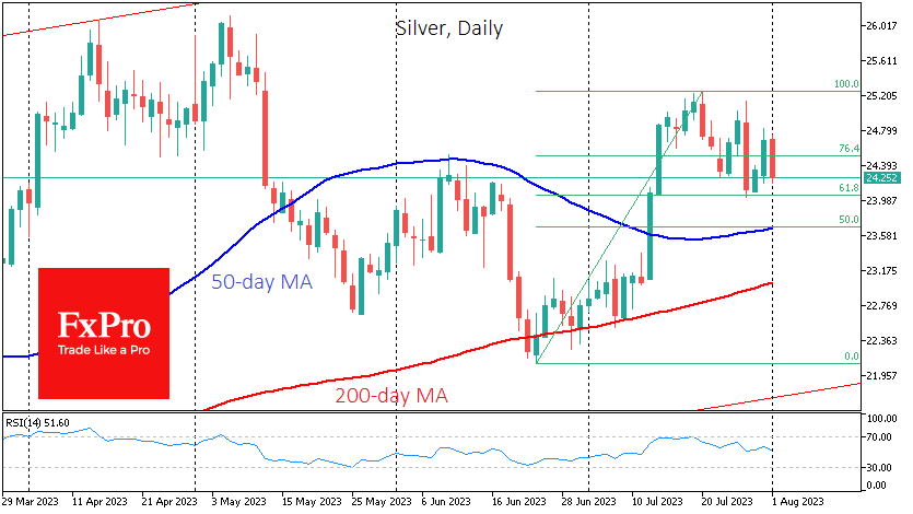 对贵金属有利的基本面因素包括投资者情绪,即在近几周一系列疲弱的通胀数据公布后,美联储已结束加息。