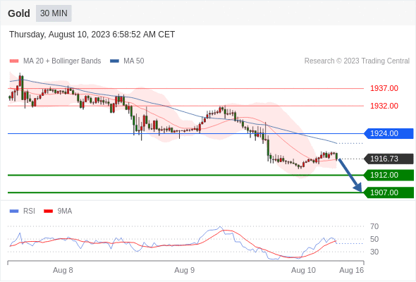 在 1924.00 之下,看跌,目标价位为 1912.00 ,然后为 1907.00 。