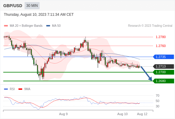 在 1.2735 之下,看跌,目标价位为 1.2700 ,然后为 1.2680 。