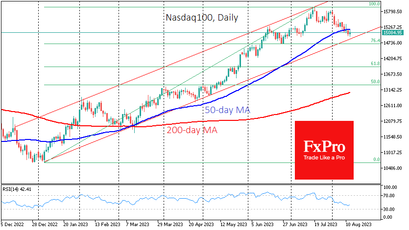 FxPro高级分析师Alex Kuptsikevich指出:纳斯达克指数上周五收盘下跌0.7%,本周累计下跌1.9%,自本月初以来累计下跌近5%。此外,上周五也没有出现明显反弹。这表明,这些科技巨头在经历了今年年初以来的强劲反弹后,从8月初开始出现了一些获利了结。