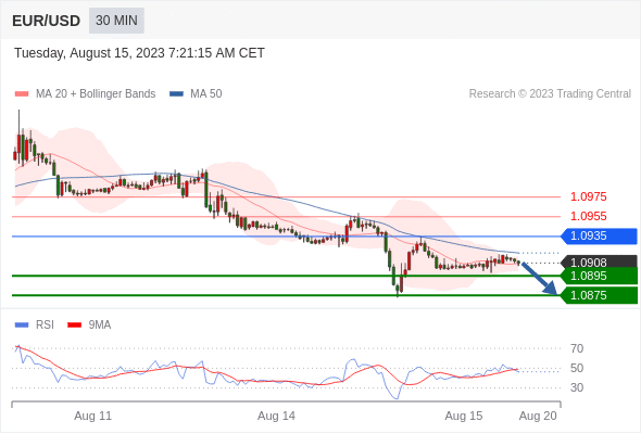 在 1.0935 之下,看跌,目标价位为 1.0895 ,然后为 1.0875 。