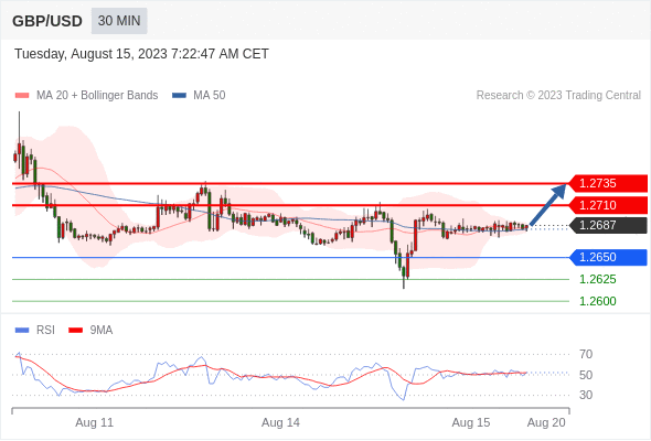 在 1.2650 之上,看涨,目标价位为 1.2710 ,然后为 1.2735 。