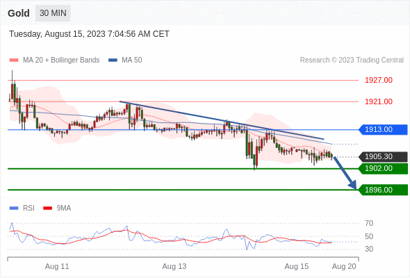 在 1913.00 之下,看跌,目标价位为 1902.00 ,然后为 1896.00 。