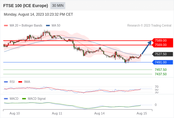 英国富时100指数期货 当日内: 看涨,当 7491.00 未被跌破。