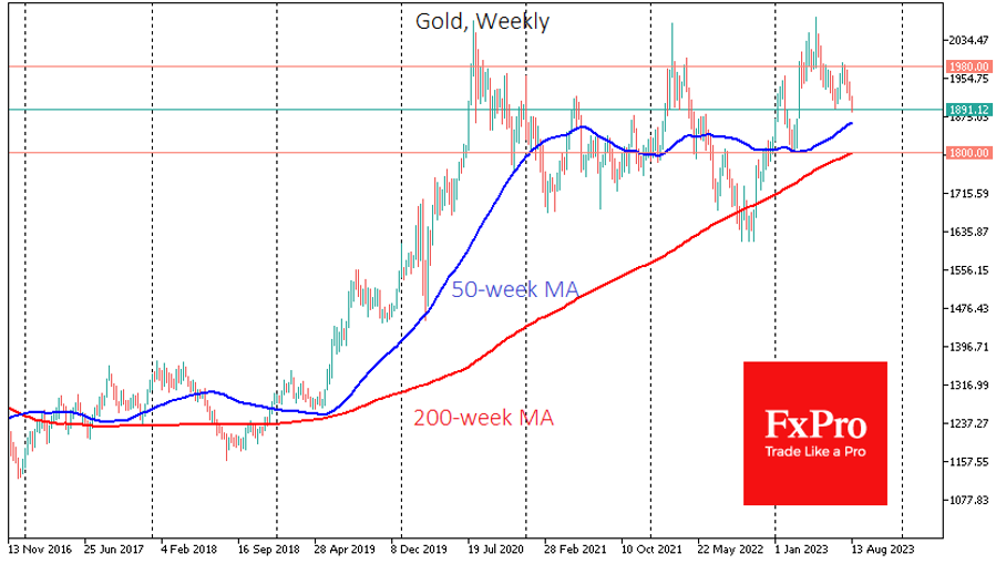 本周,黄金也跌破了之前的本地低点--这是除了本地低点(7月的1985美元,5月的2080美元)之外的另一个下行趋势形成的信号: