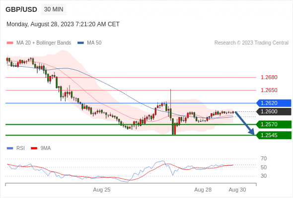 在 1.2620 之下,看跌,目标价位为 1.2570 ,然后为 1.2545 。