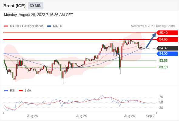 在 84.00 之上,看涨,目标价位为 84.95 ,然后为 85.40 。
