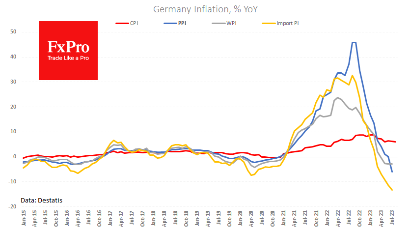德国7月份进口价格指数下降0.6%,为连续第10个月下降。而去年同期的降幅为13.2%。这一数字比预期低0.3个百分点,这可能是整体通胀下降的早期指标,并降低欧洲央行进一步收紧政策的可能性。