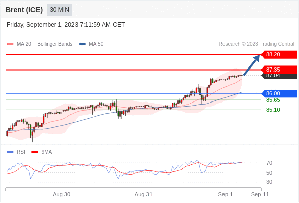在 86.00 之上,看涨,目标价位为 87.35 ,然后为 88.20 。