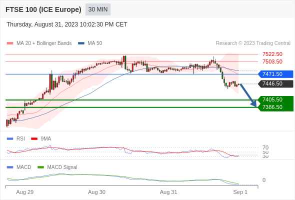 英国富时100指数期货 当日内: 看跌,在 7471.50 之下。