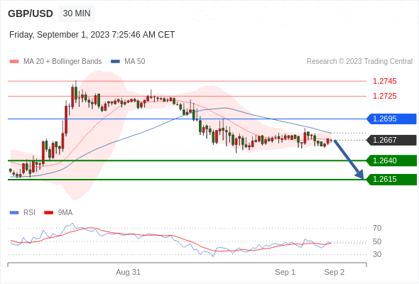 在 1.2695 之下,看跌,目标价位为 1.2640 ,然后为 1.2615 。