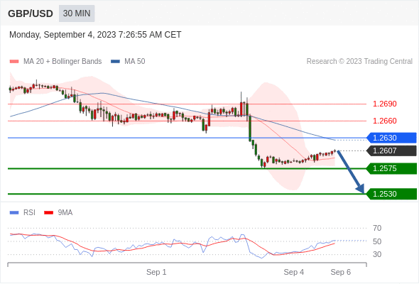 在 1.2630 之下,看跌,目标价位为 1.2575 ,然后为 1.2530 。