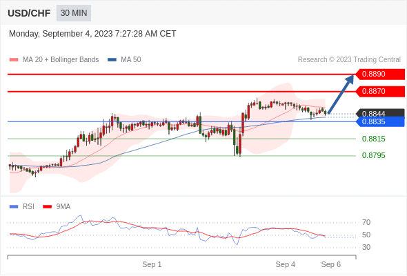 在 0.8835 之上,看涨,目标价位为 0.8870 ,然后为 0.8890 。