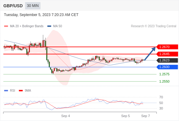 在 1.2600 之上,看涨,目标价位为 1.2645 ,然后为 1.2670 。