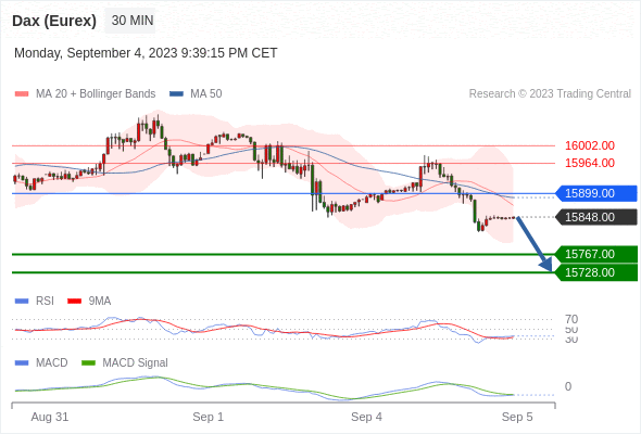 如突破 15899 ,德国DAX指数期货 (Eurex) 目标方向为 15964 和 16002 。